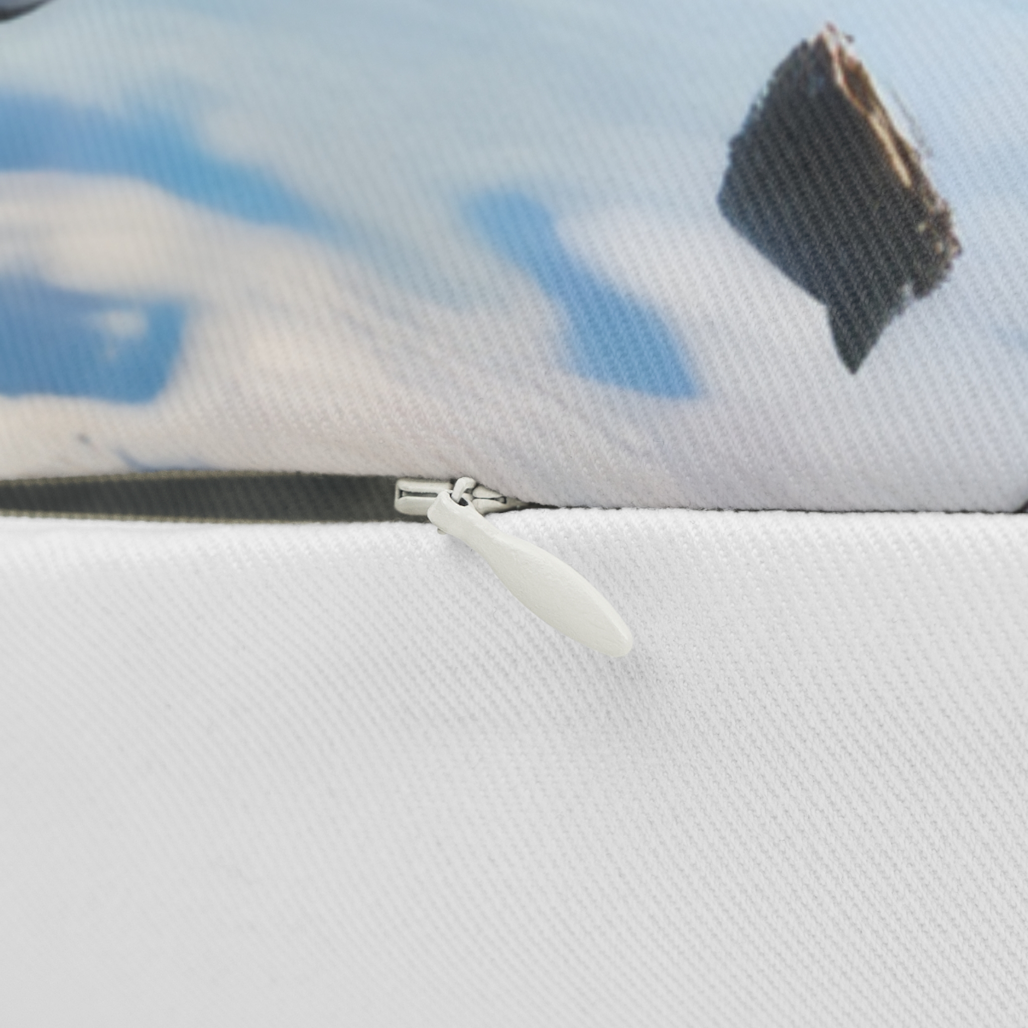 a recycled polyester insert offers eco-friendly loft and plush support,