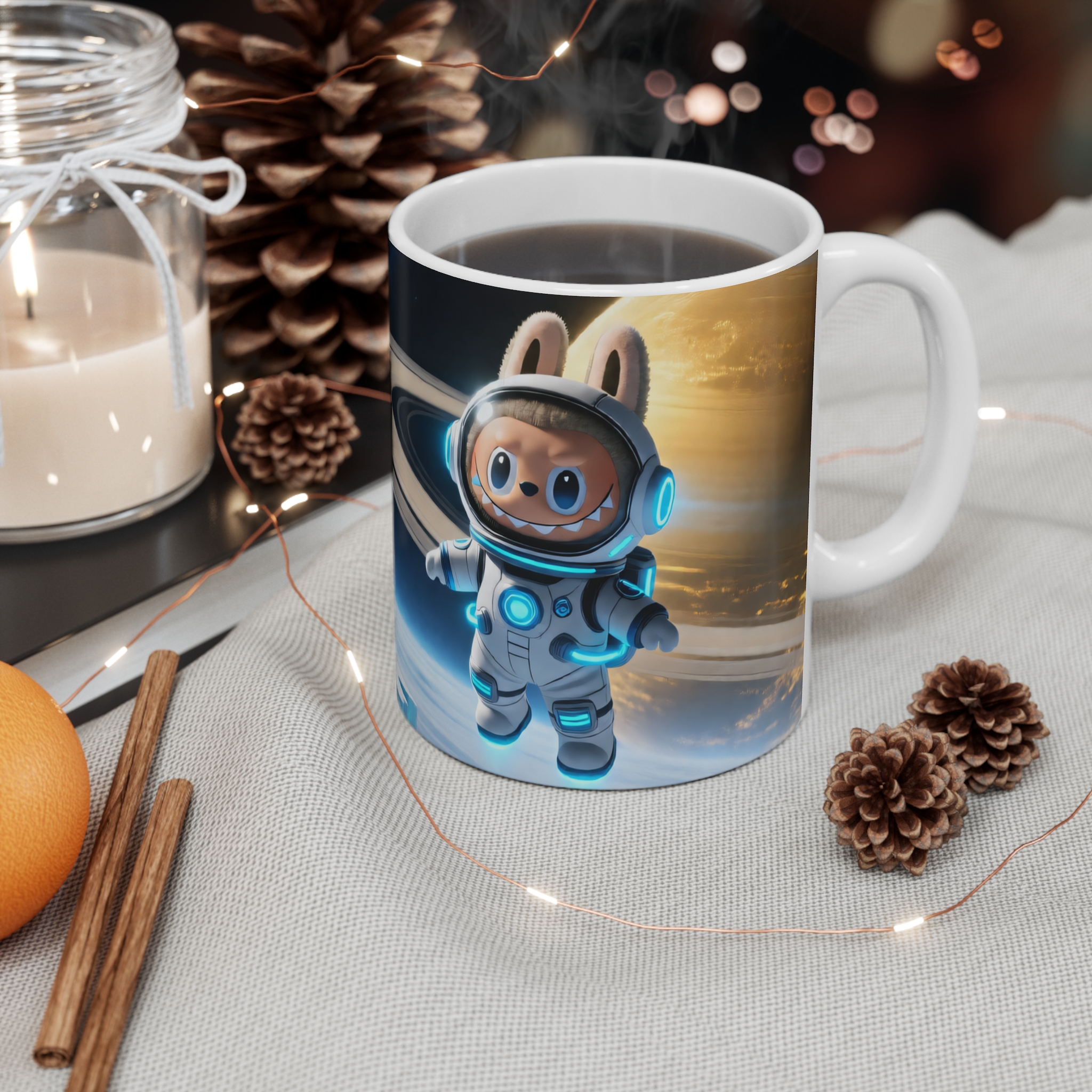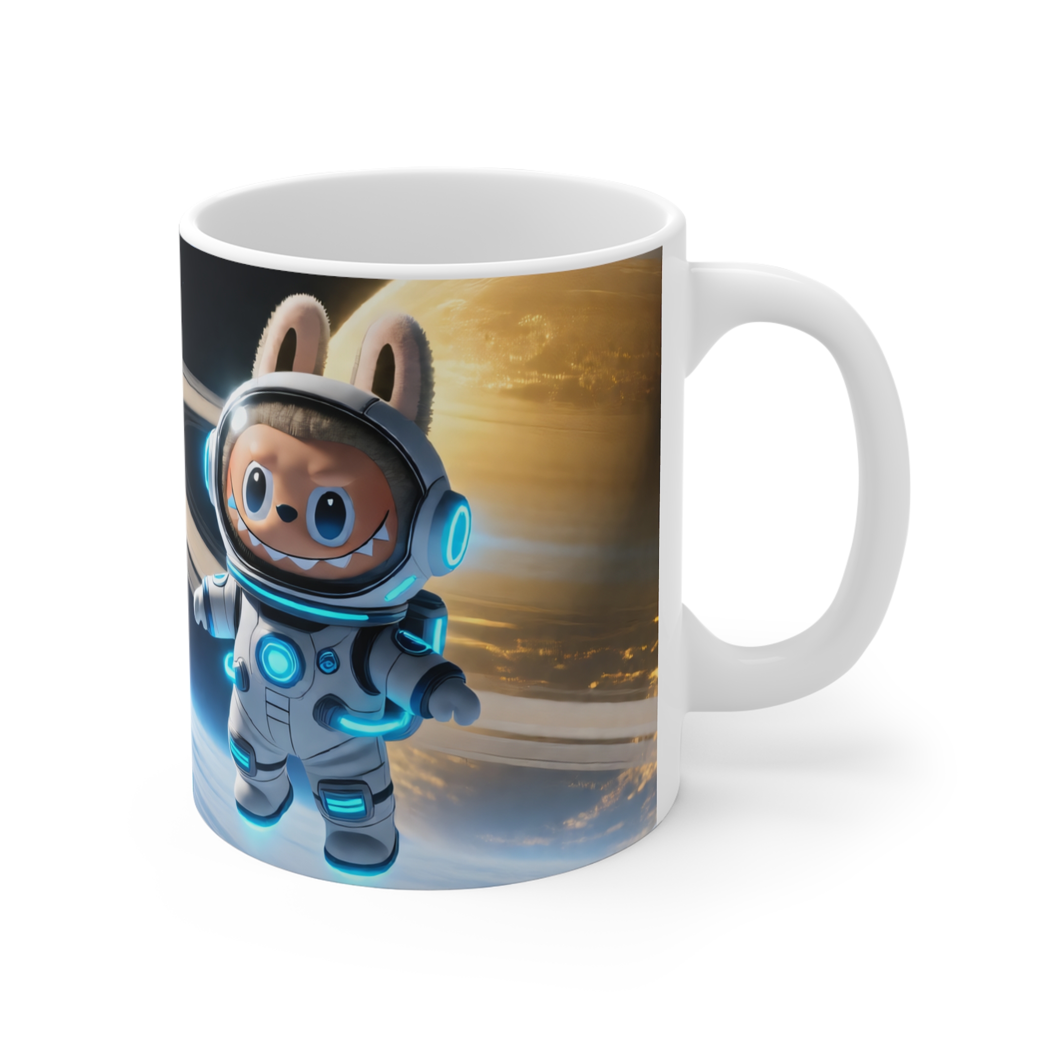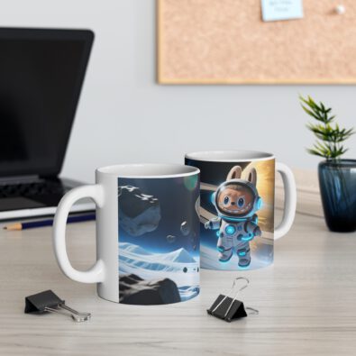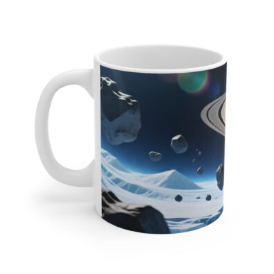 Sip the cosmos. This 11 oz white ceramic mug wraps a dreamy space scene around every morning — frosty moonscapes, drifting asteroids, and a tiny astronaut exploring rings that glow like distant neon. The artwork keeps its crisp colors thanks to AAA+ ORCA coating, so the little details — lens flares, icy ridges, and the astronaut’s helmet reflection — stay vibrant through daily use. It feels like a quiet moment between stargazing sessions: warm hands around ceramic, steam rising, imagination already in orbit.