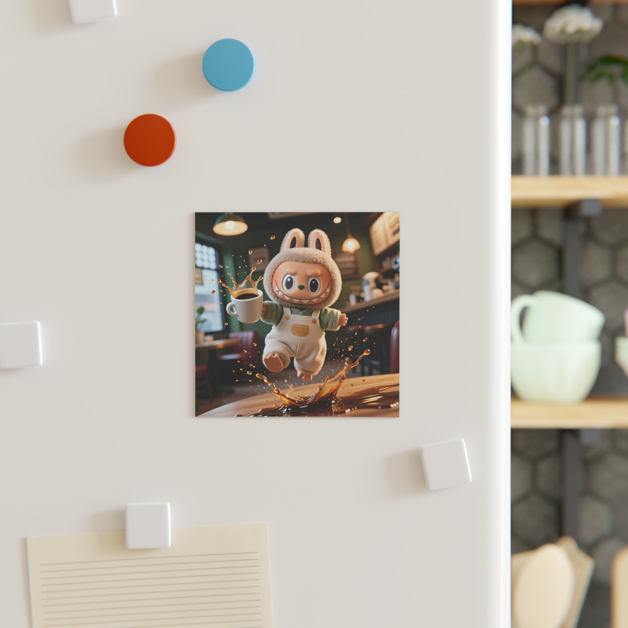 Bright, square magnets that bring a little relatable joy to your everyday surfaces. Featuring the mischievous Labubu in a “Coffee Catastrophe” moment, these durable magnets capture a tiny character leaping with a coffee splash in mid-air. It feels like a small, cheerful (and slightly chaotic) moment stuck on your fridge, locker, or even your car.